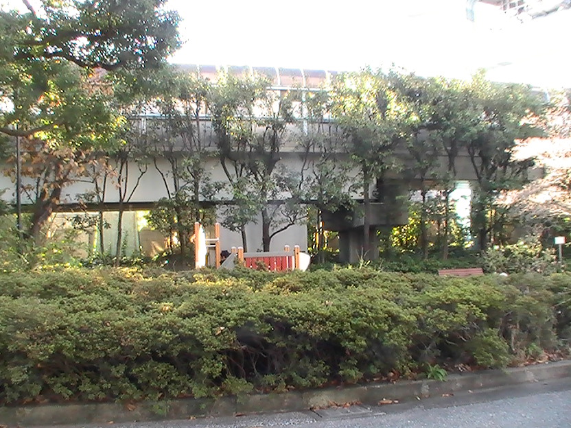 浜松町の駅からすぐのところにある小さな公園です。 公園にはベンチと小さなすべり台の遊具があります。公園の上にはモノレールが走っています、線路からも近いので、山の手線や京浜東北線などの各路線の電車の行きかう様子が見えます。東京ガス本社ビルの社屋の北側位置しています。