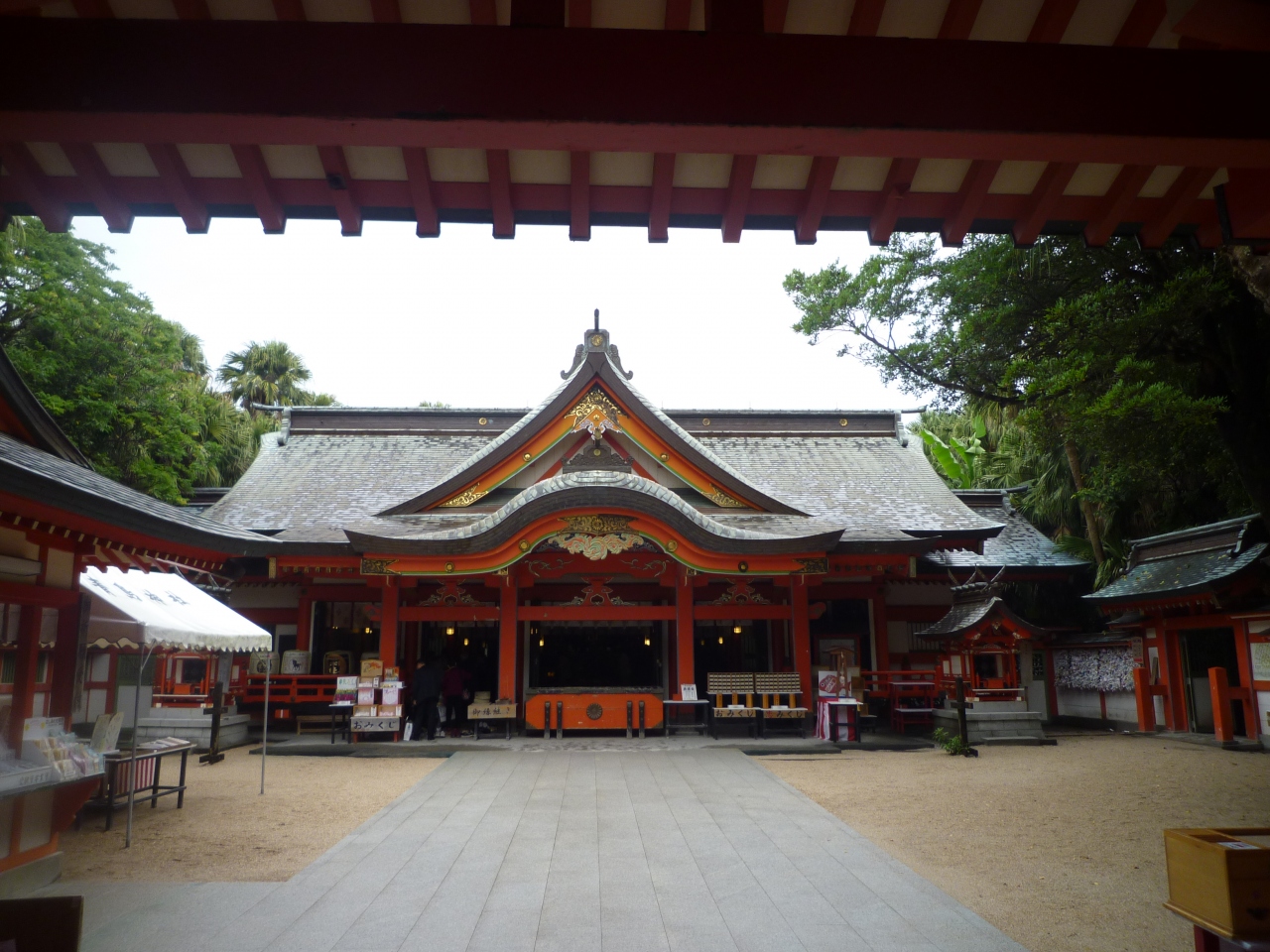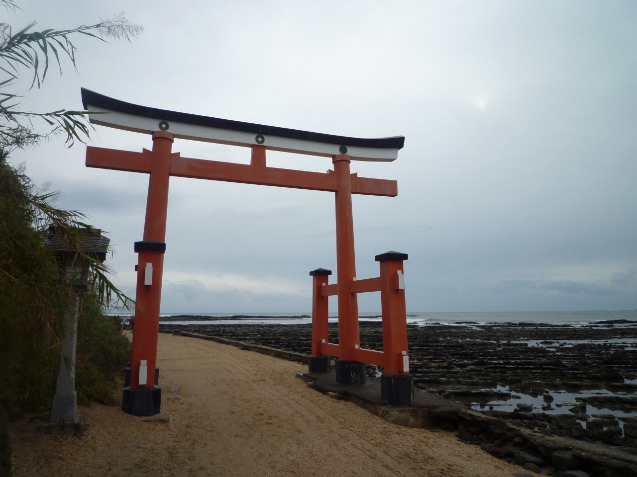 青島の周りには、縞模様の地層、鬼の洗濯板が広がっています。自然が作り出す大地のエネルギーを感じるながら参拝する神社、とてもパワーを感じます。
