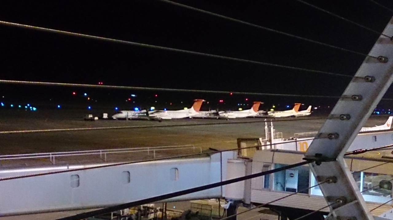 空港展示室の空ステージから直接出入りが出来て、自分が訪問した時は空ステージを見学してから、展望デッキへ出ました。夜でしたので周囲は見渡せませんが夜間発着する飛行機がまじかで飛び交うのが見られます。また、この空港の展望デッキが他の空港と違うのは屋久島や奄美諸島など離島便がたくさん就航しているのでプロペラ機が見られます。また、たくさん駐機しているのが確認できます。プロペラ機が飛び立つところは見ることが出来るのは日中のようなので、見たければその時間帯に訪れる必要があります。