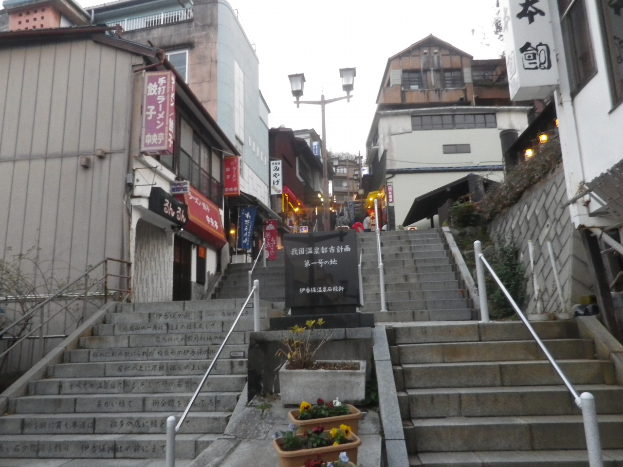 観光案内所があるバスの待合所から伊香保神社までの石段街は伊香保を訪れた観光客が歩くコースです、お土産屋、飲食店、旅館が並んでいます、途中には関所跡、日帰り温泉入浴施設の石段の湯、足湯、休憩所などの施設がありますので立寄りながら歩くことが出来ます。