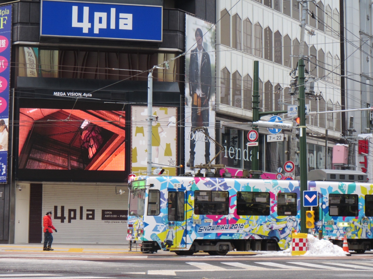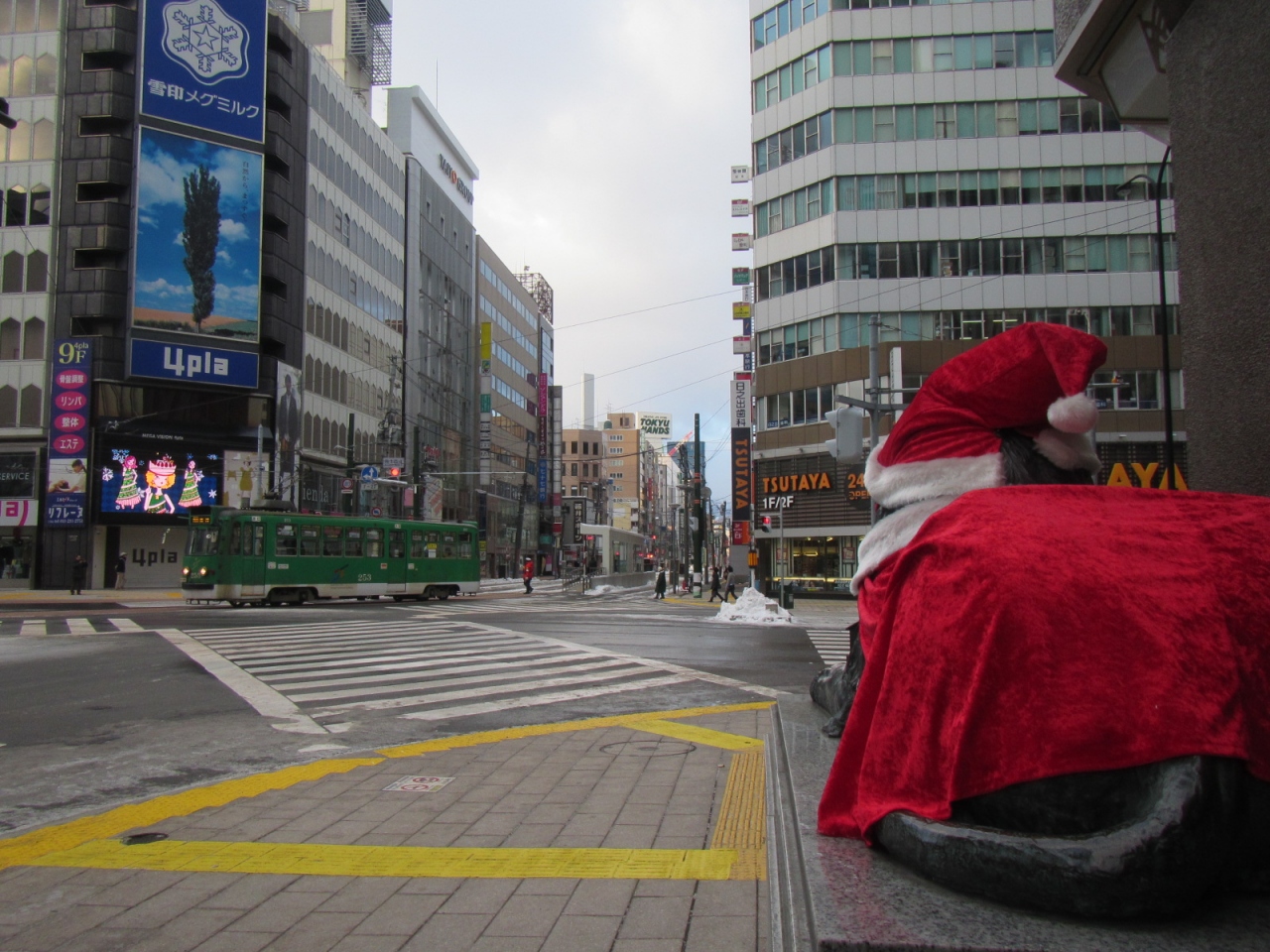 西4丁目電停から内回りに乗って西線方面へ行く場合、地下道からの連絡が、ポールタウン入ってすぐの4pla(4丁目プラザ)へ入る横からの地上出口を利用すると、さほど雨風に濡れずに電停へ到着できるようになりました。