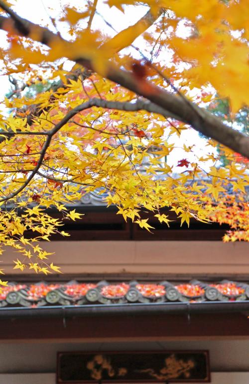 天下の名妓とうたわれていた二代目吉野太夫寄進の「吉野門」で有名なお寺です。入口の紅葉があまりにも見事で、胸躍らせて入ったものの、少々紅葉は終わりかけ...。木々の紅葉は残念でしたが、見事な散紅葉を楽しむことができました!団体のお客さんも多く拝観されていたようですが、敷地が広いため、じっくりたっぷり紅葉撮影を楽しむことができました。