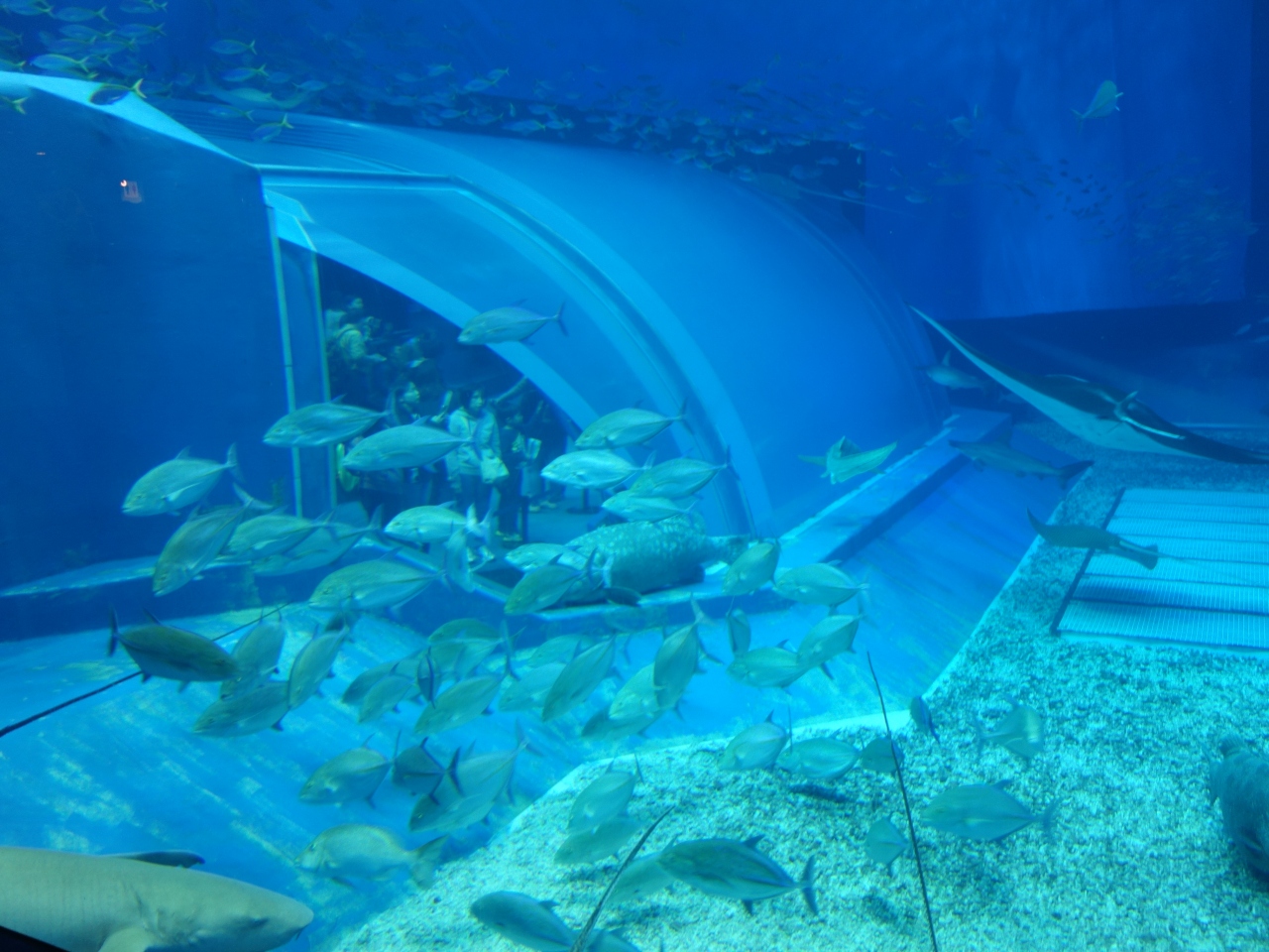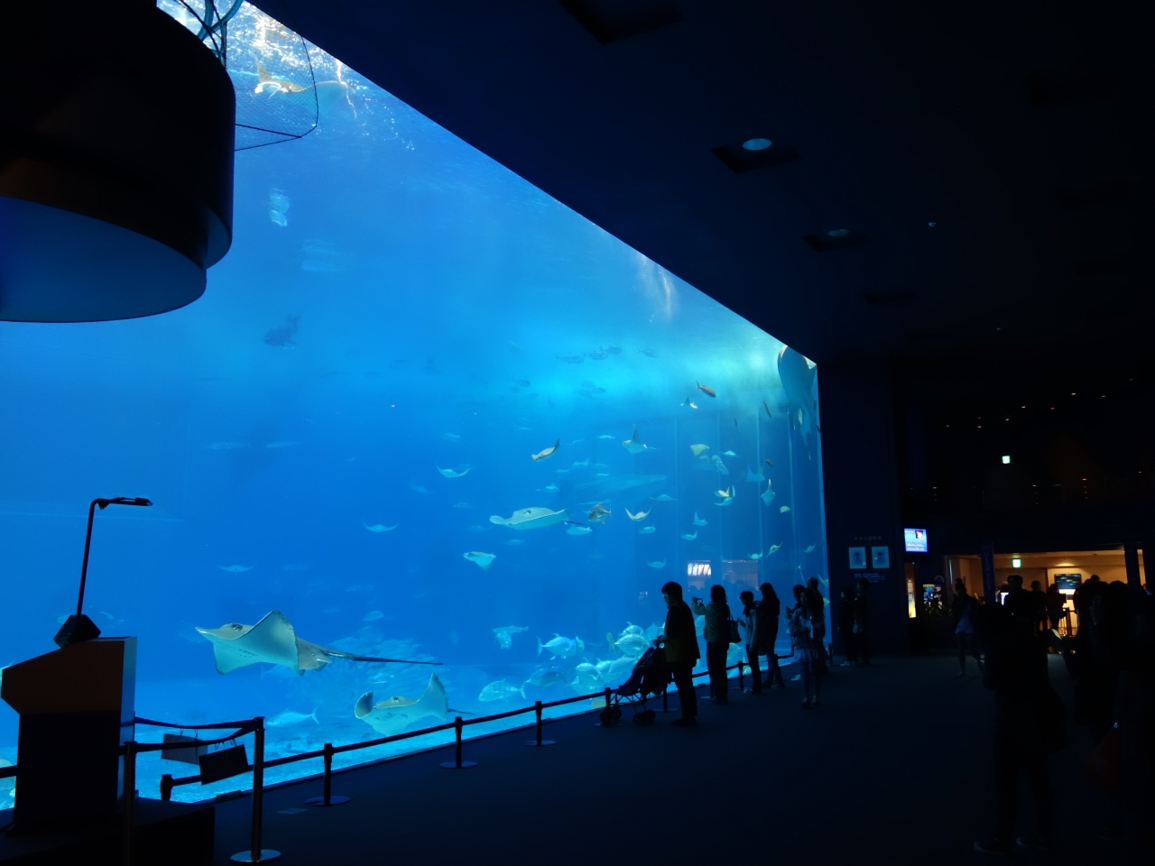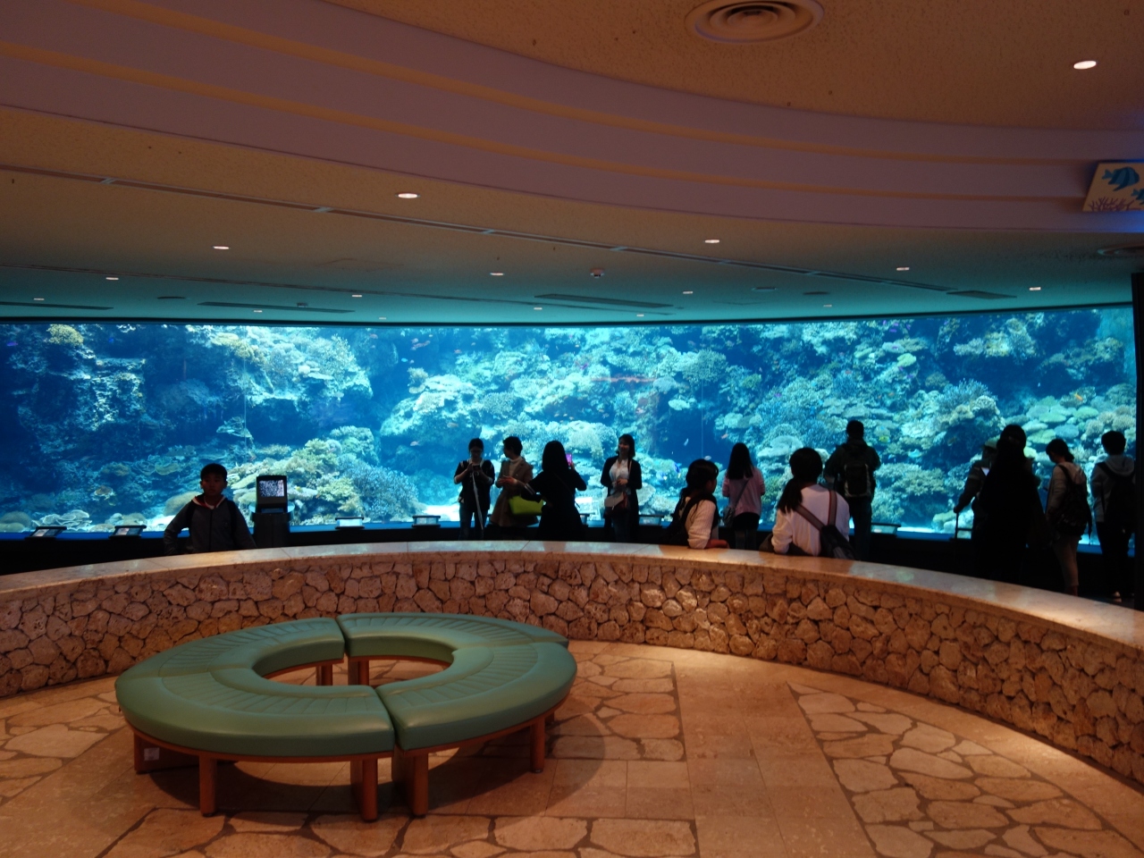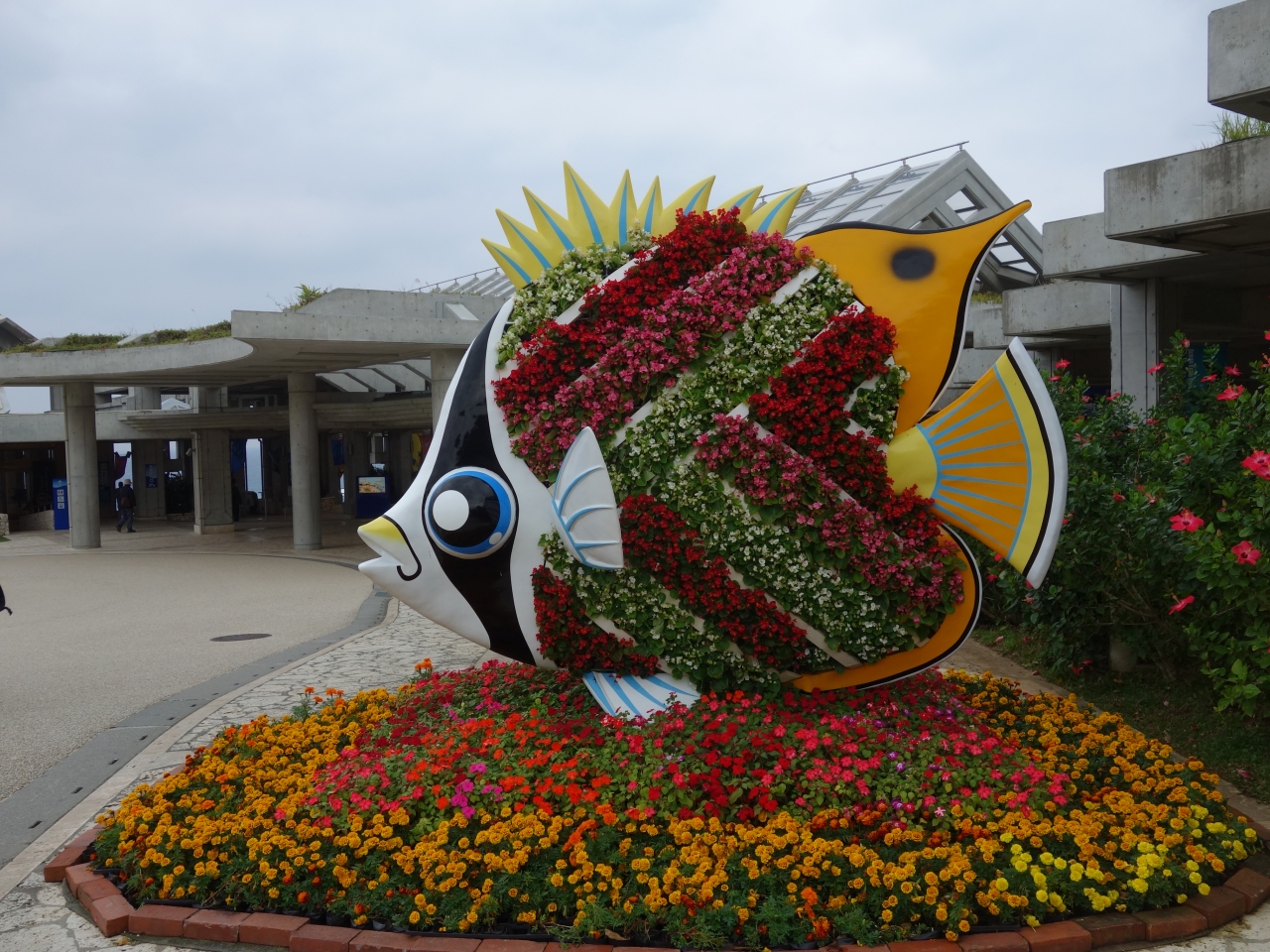 美ら海水族館は名前だけは有名なところかと思っていたら,公園の一角にある建物でした。内容自体も充実していてとてもいいのですが,公園がまたすばらしい。海に面した斜面にあり,その眺めは天下一です。公園なら入場無料ですので,何回もこれます。駐車場も無料です。
