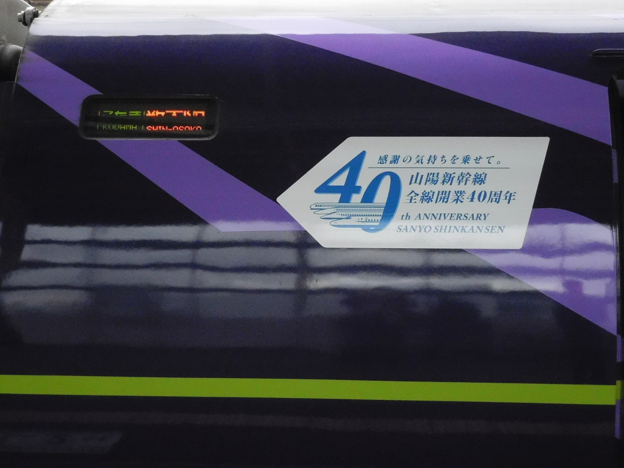 写真を撮っている人がいるのでなんだろう・・・もしかしたら・・・と思ったら11月7日から新大阪と博多間を走るエヴァンゲリオン号でした。