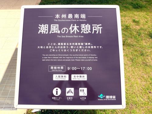 南紀白浜空港から70km 車で2時間ほどの紀伊半島の先端潮岬に望楼の芝に潮風の休憩所が出来ました。