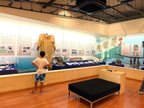 延べ床面積約190平方メートルの鉄筋コンクリートの平屋造りの施設には、昔オーストラリア北部のアラフラ海に渡って真珠採りをしていた串本町民についての展示があります。