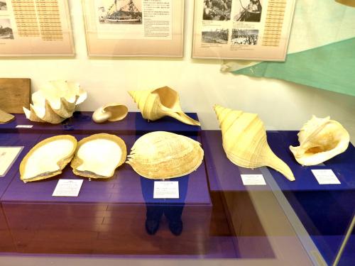 漁の装備や、真珠貝・白蝶貝・黒蝶貝などの珍しい貝殻など、小規模ながら興味深い展示です。