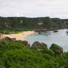 崖の途中に駐車場があり、そこから歩いてビーチです。