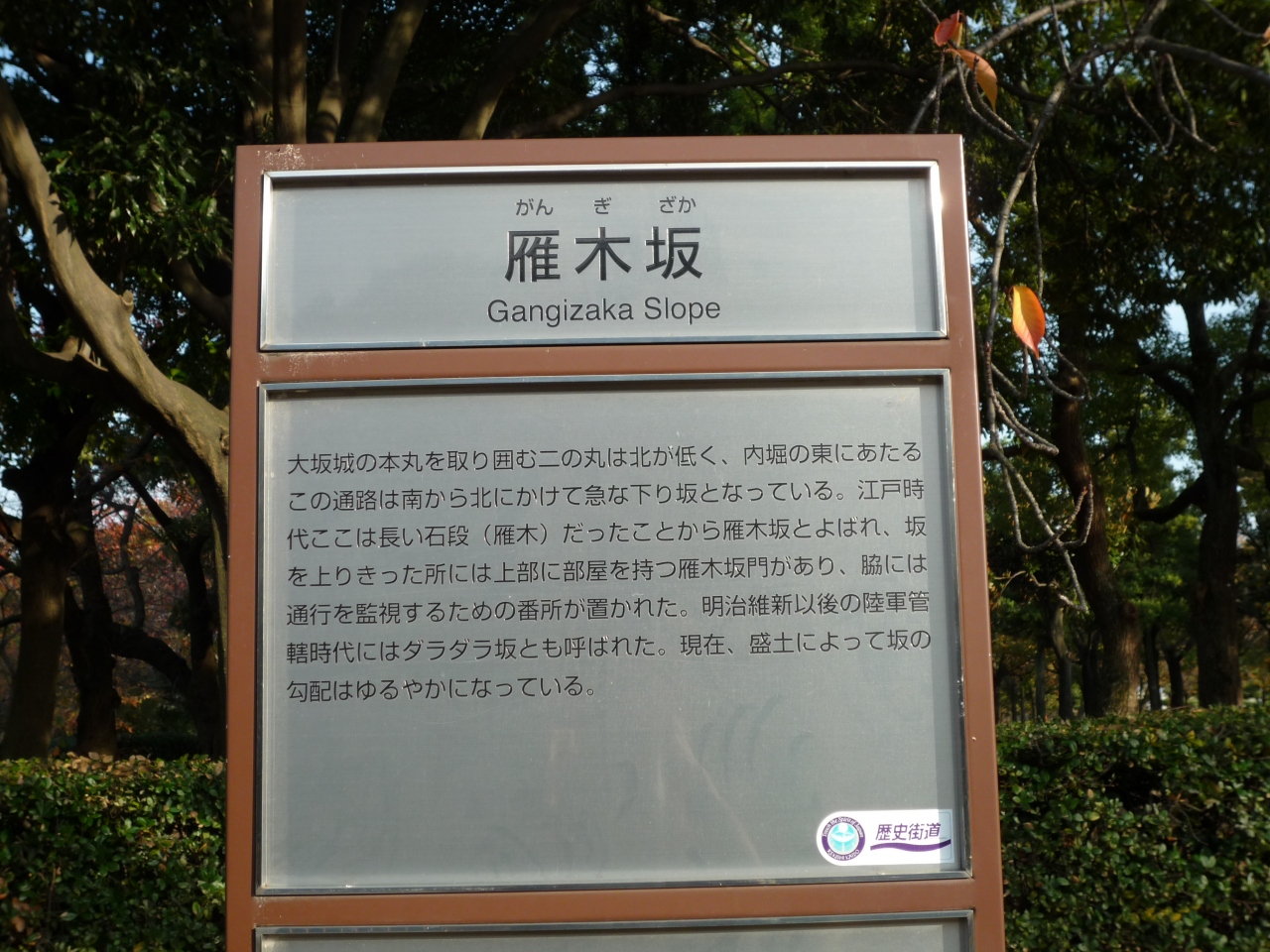 大阪城公園の梅林と内堀の間にある坂です。