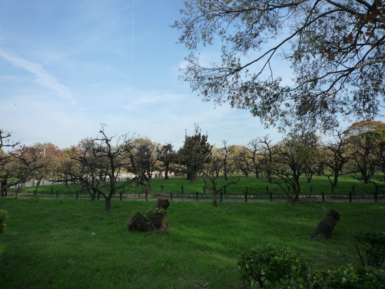 海外からもたくさんの観光客が大阪城と梅林の景色を楽しんでいます。
