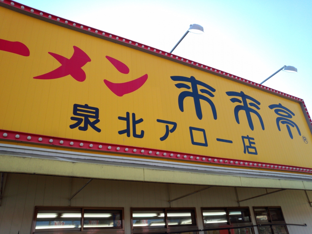 光明池の運転免許センターからほど近い場所にある来来亭です。チェーン店で黄色い看板が目立っています。大型パチンコ店のすぐ横で、駐車場は共有です。