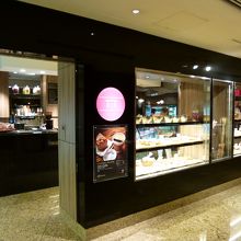 ピンクのロゴが印象的なお店で、ケーキや焼き菓子なども販売されています。
