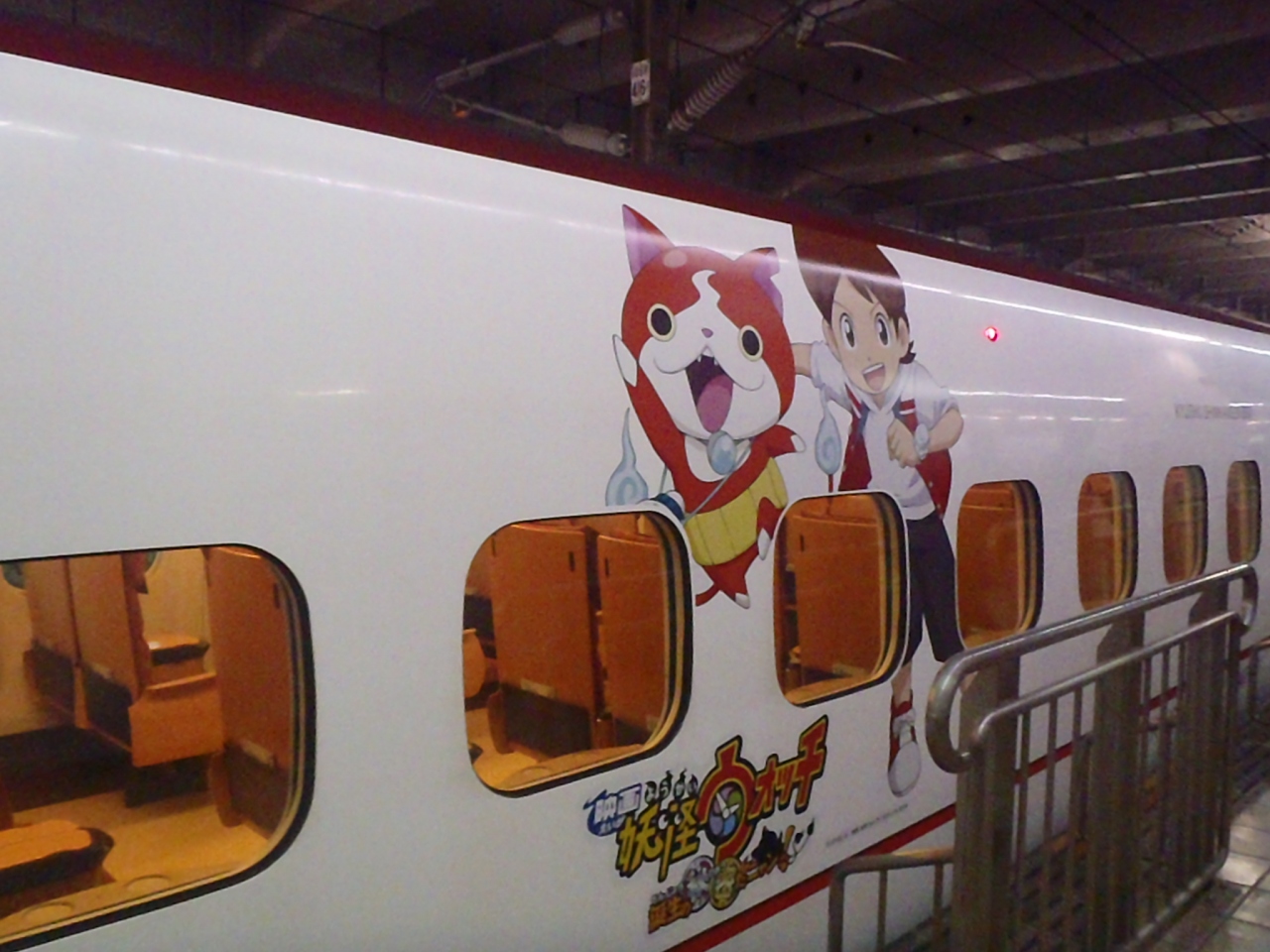 JR西日本とJR九州を結ぶ新幹線車両でちょうど訪れた時には、子供たちに大変人気の妖怪ウォッチの映画とのコラボ企画、妖怪ウォッチラッピングトレイン車両が運転されていました。
