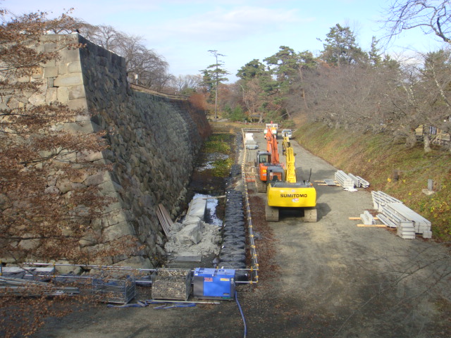 100年ぶりに大修理のために、弘前城天守が曳屋とよばれる移動中で、また弘前城のお堀の石垣も内濠を埋め重機が中に入っており大改修中でした。また訪れた時期は紅葉も終盤にかかっており冬支度の最中で、どことなく寂しい雰囲気です。弘前城はやはり春の桜の季節が一番のようですので、次回はその季節に訪れてみたいものです。