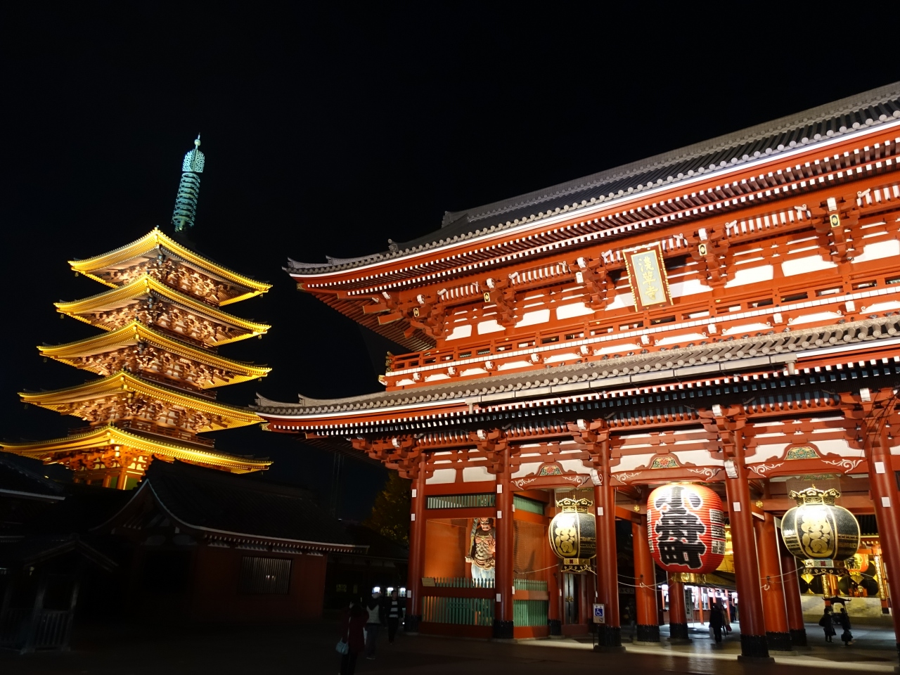 夜間には五重塔全体が美しくライトアップされ、夜空に浮かび上がるような印象を受けます。