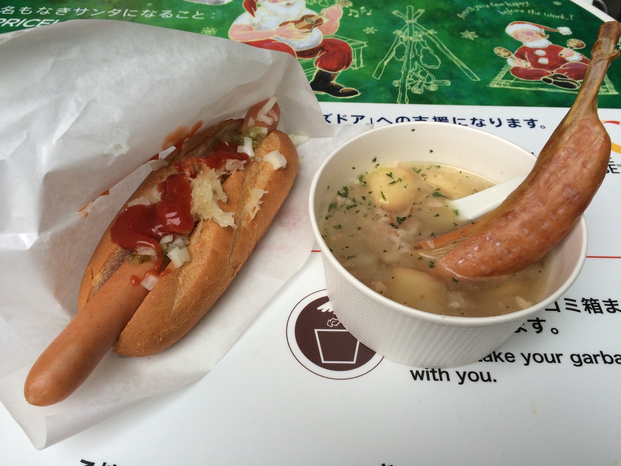 ランチはジャーマンホットスタンドのプレーンドックとアイントプフにしました。