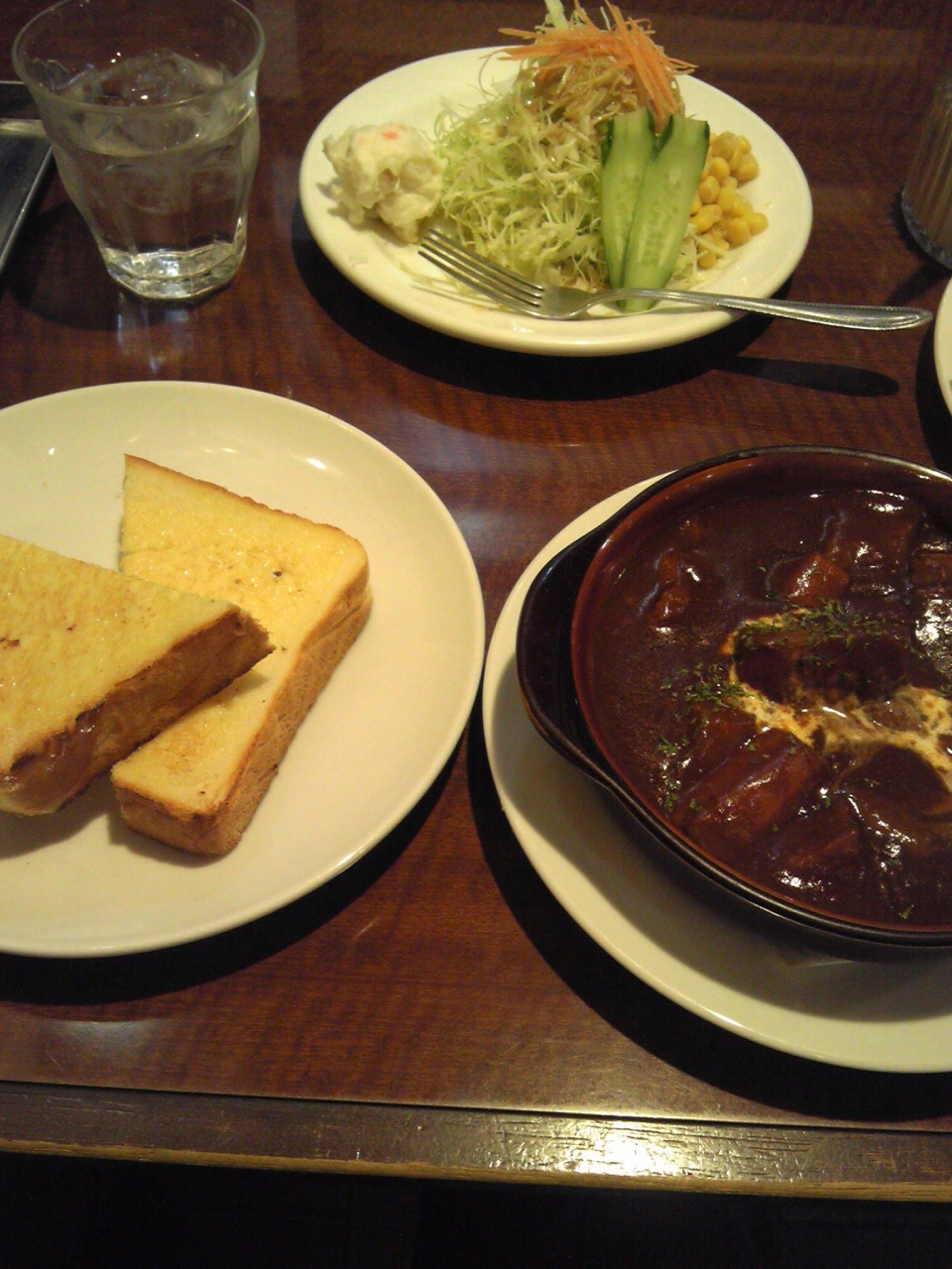 下通りを少し入ったところにメニューの看板があり、キクタシューズ店に向かって階段を下りて地下にあります。入り口は少しわかにくいです。本格的な喫茶店の雰囲気です。お客さんの年齢層は高いようです。メニューはパスタ、サンドイッチ、シチューなどさまざまあります。セットは、サラダ、ドリンクつきです。値段はお手ごろな価格です。食後に、こぶ茶が出されます。