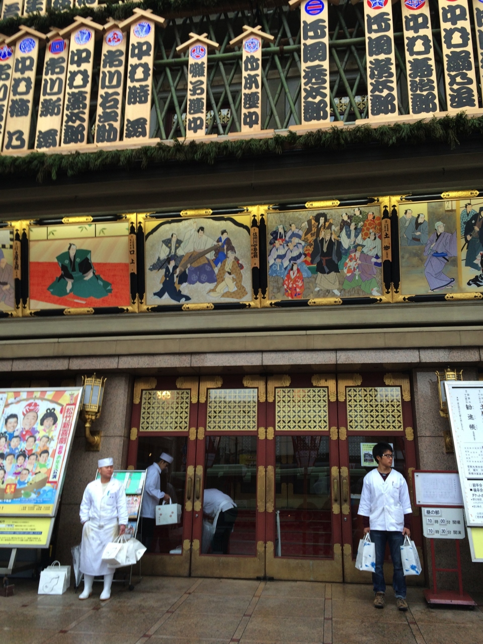 歌舞伎座として有名な南座。場内にはお菓子やお弁当を売っているお店ももちろんあるのですが、毎月見ているとどうしても空きてしまいます。そして、近隣にはお弁当を配達して下さる業者もあるのですが、基本的に玄関先でのお渡し。開場前は写真のような光景が繰り広げられます。
