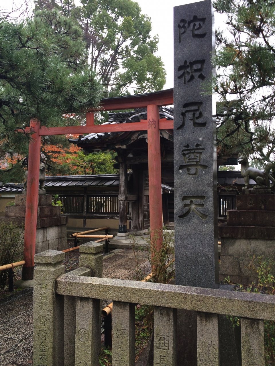 建仁寺からほど近い場所にある、陀枳尼天尊を祀っている「京都の豊川稲荷」こと、陀枳尼尊天堂。付近にある建仁寺とは明らかに雰囲気が異なり、狐さんも鎮座しています。また、赤い鳥居も雰囲気があります。この、石碑も大きく信仰の深さを感じました。
