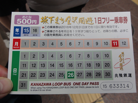一日周遊券(¥500)が便利です。近江町市場、香林坊、21世紀美術館、県立美術館、成巽閣、兼六園と観光するのに乗りました。城下まち金沢周遊と重複する停留所もありますが、金沢観光にバスは欠かせません。県立博物館と加賀本多博物館へは県立美術館で降車すると便利、路線バスも¥200区間なら乗れます。