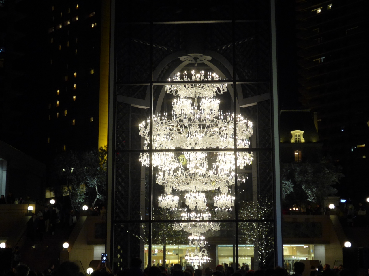 高さ8.4mのシャンデリアが飾られてライトアップされています。