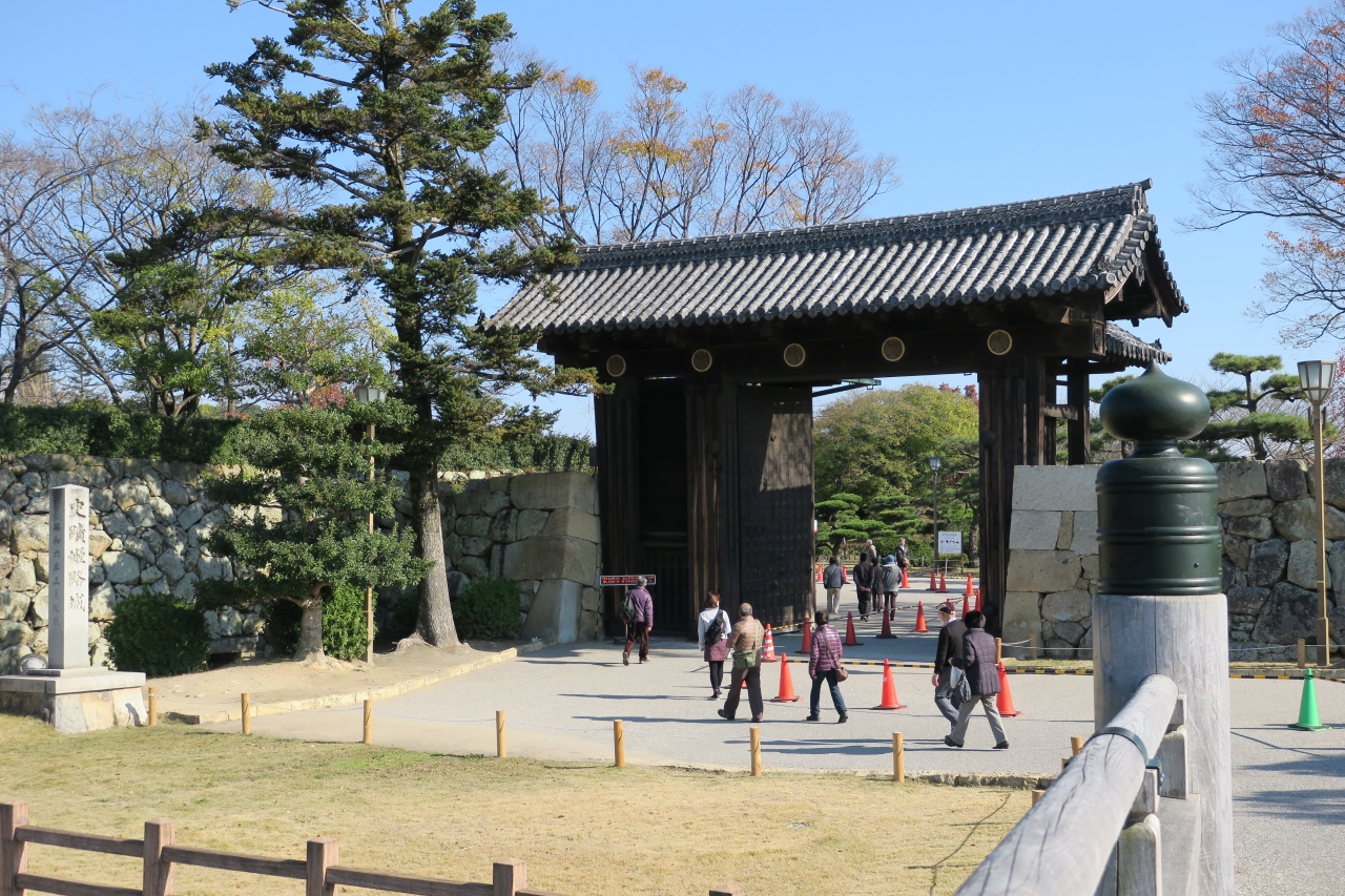 姫路城見学に車で行く際に最も便利な大手門前駐車場に停めると、こちらからの入場となります。多くの観光客がくぐっています。