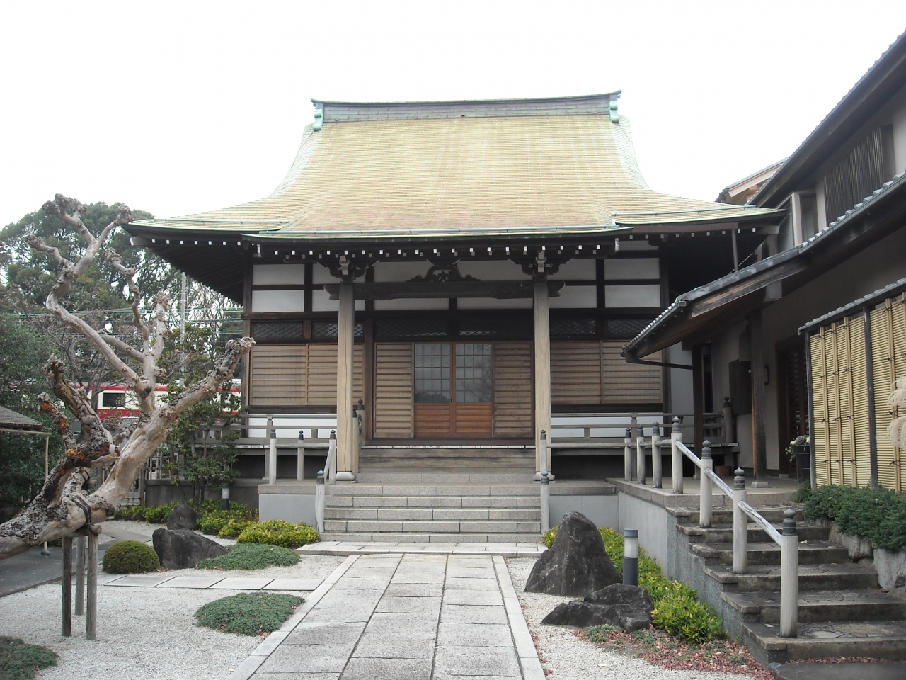 寺名からみて良い井戸でもあったのでしょうか、“海岸山”と称しても全く山の気配はない所です。旧東海道に面し現在でも車の往来の激しいところで、海が見え遠く房総も望めたはずです。説明文によると幕末の領事館要請に対し住職が嫌がり屋根を剥がして修理中と拒絶したとあります。