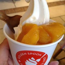 ヨーグルトでできたアイスクリームなので、ヘルシーです。見た目は、普通のソフトクリームですが、味はしっかりヨーグルトの味がします。トッピングは1種類50円でできます。いっぱいトッピングすると結構なお値段になっちゃいますね〜。