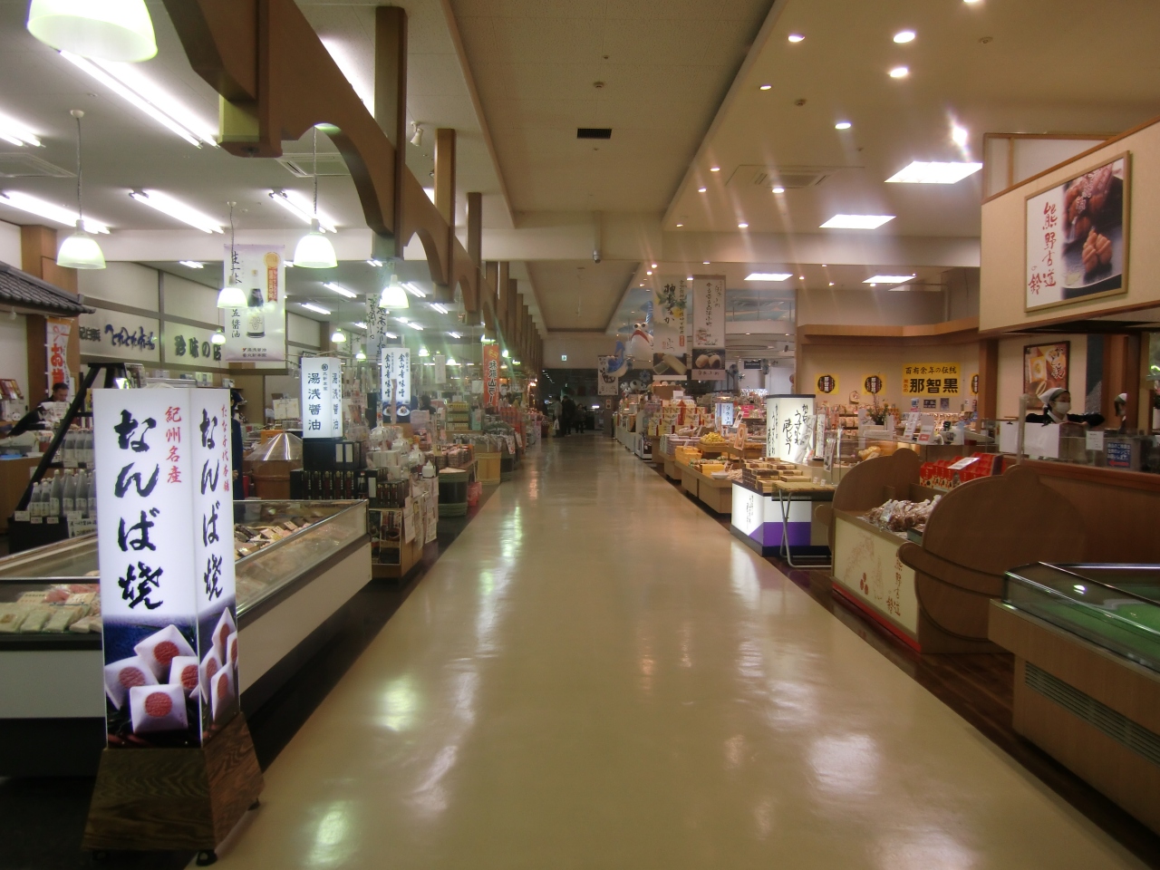 ここは白浜で人気のスポットです。新鮮な海の幸はもちろん、和歌山ラーメンやゆず最中等地元商品をたくさんそろえています。運が良ければ、マグロの解体ショーを見ることができます。新鮮なお寿司など店内での飲食も可能です。