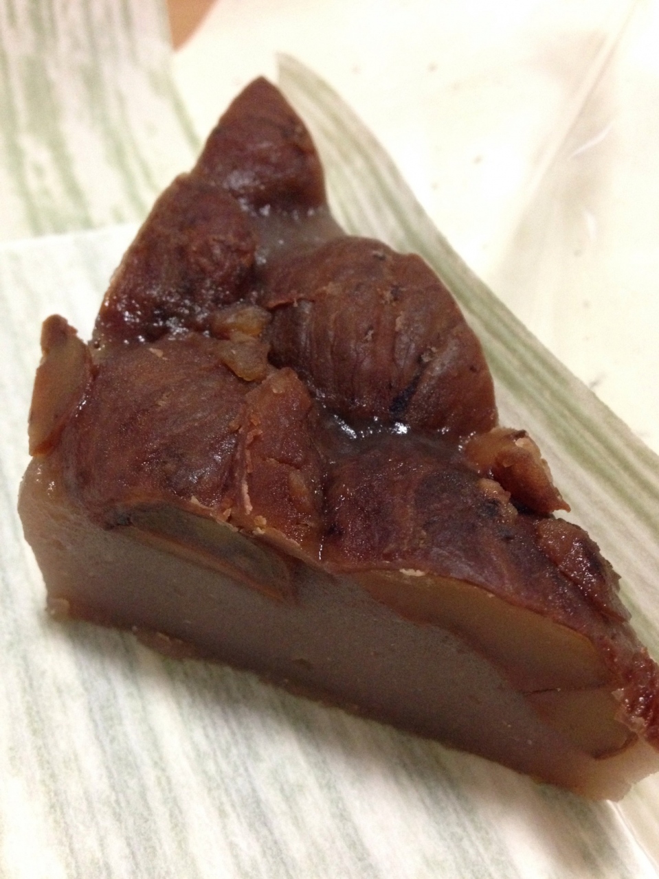 季節の栗蒸しようかんで、上には渋皮栗がのっています。