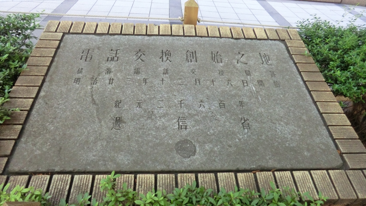 三菱UFJ信託銀行の本店の南側の壁面に「電話交換創始の地」のプレートがあります。1890年(明治23年)年12月、横浜電話交換所で、日本初の電話交換業務が、横浜と東京の間で開始されました。交換手は4人、横浜の電話加入者は42人だったそうです。