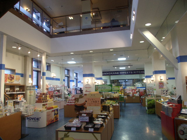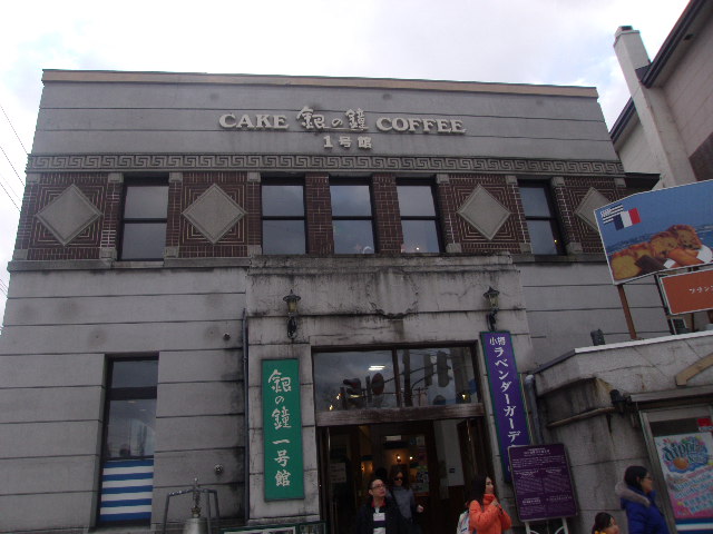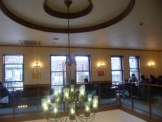 持ち帰り可能なカップでお替り自由でコーヒーを楽しめる、ということで人気の銀の鐘ですが、1号館は特にメルヘン交差点の目立つ場所にあって、常に多くの観光客で賑わっています。元々は中越銀行の小樽支店として利用されていた石造りの重厚な雰囲気の建物ですが、内装はお洒落に改装されていて、銀行としての名残を感じることは難しいです。1Fはお土産物屋さんみたいになっていますが、あまり人がいない一方で、殆どの人が目的としている2Fのカフェはとても賑わっていて、ここの随所に、小樽の実業家に関する解説パネルや船の模型など、色々と見応えがある展示が並んでいるので、博物館感覚で訪れるのも楽しい所かと思います。