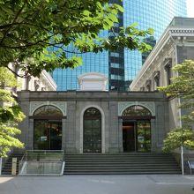 明治5年、日本で最初に開業した鉄道ターミナル新橋停車場の駅舎が再現されています。館内には「鉄道歴史資料室」とレストラン「グランカフェ新橋ミクニ」が設けられています。各所に設けられた見学窓から駅舎基礎石積みやプラットフォーム石積みなどを見学できるようになっています。外には駅舎に続く石積みのプラットフォームが再現され、レールも敷設されています。