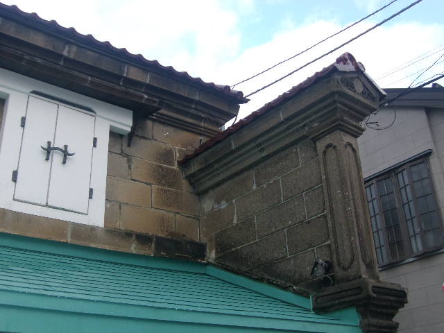 こちらは現在では瑠璃工房というガラス細工のお店として営業していますが、商店建築の面影を残すものとして、建物の両側に見られるうだつが挙げられます。”うだつが上がらない”等と揶揄する言葉がありますが、当時の商店主はこのうだつを相当な思いで設置したんだろうなあと、本当に成功した商店の証としてのその威風堂々とした姿に感銘を受けました。