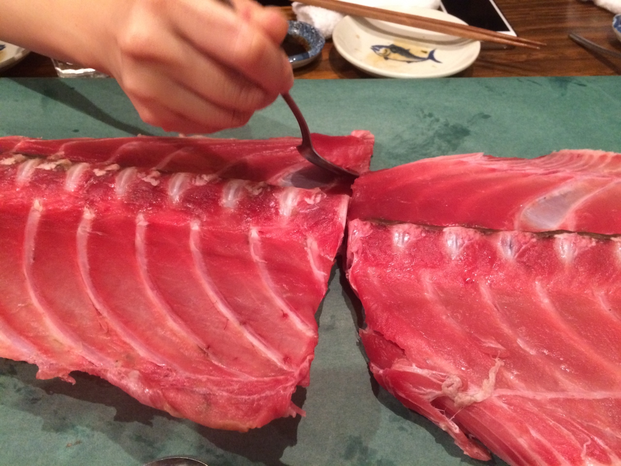 骨の周りの身をスプーンでほじくる
