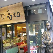 お店の入り口に高知出身の有名人の坂本龍馬の銅像があります。