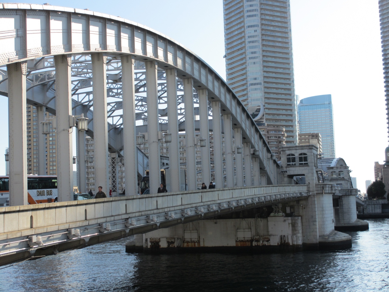 隅田川に架かる長さ246m、幅22mの日本最初の双葉跳開橋として、1940年から1970年まで使用されていました。最盛期は1日7回、70秒かけて開閉していました。陸上交通量の増加に伴い、開かずの橋になってしまいました。今も橋を渡ることができ、毎週木曜日には予約制で見学ツアーが開かれています。当時使用されていた信号機も残っていて、重要文化財にも指定されている橋です。