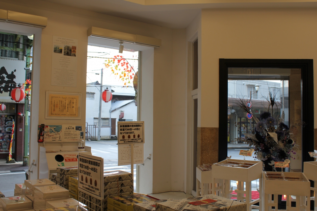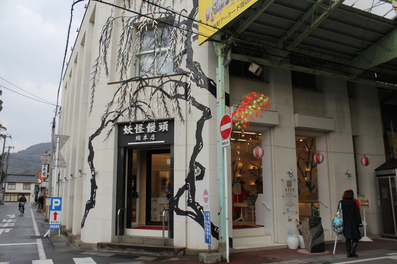 境港を散策しました。境港駅から水木しげるロードを歩いて昼ごはんに、まぐろラーメン本舗でまぐろラーメンを食べて出てきたら目の前にありました。そう言えば来る途中に2号店がありました。覗いてみると妖怪の容をした人形焼のような饅頭でした。試食も丸一個くれました