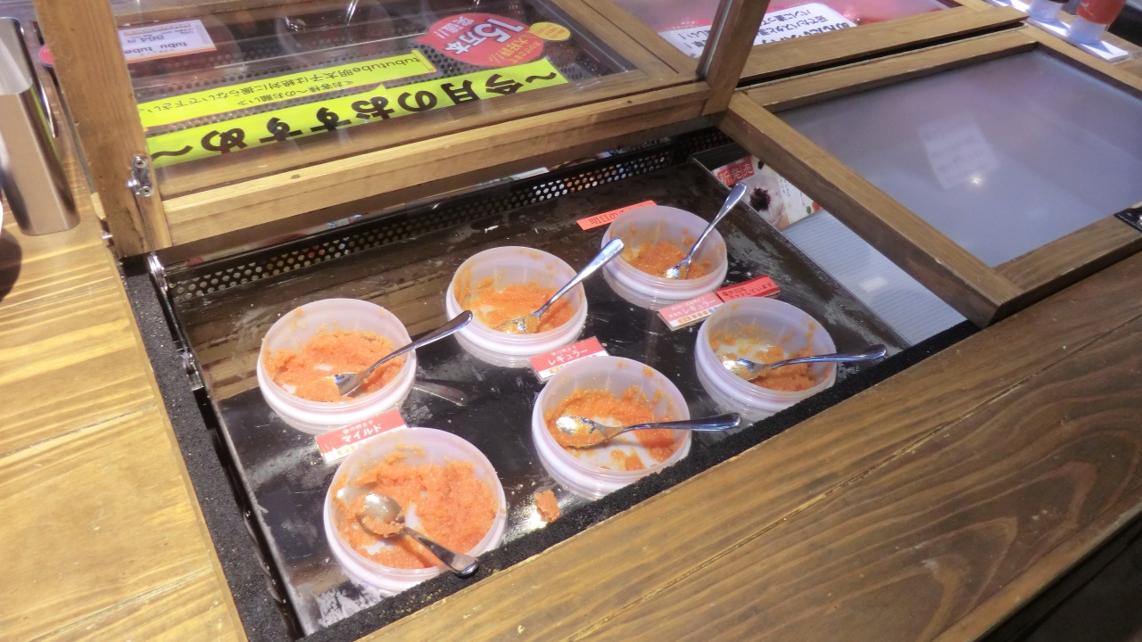 太宰府天満宮を参拝した帰りに寄りました。日本で初めて明太子を製造販売した老舗です。多くの種類の明太子が置いてあります。このお店の特徴は明太子の試食ができることです。試食のスペースがあり、明太子単独を食べるのではなくて、店内に炊飯ジャーがあって、カップにご飯をよそって、そのご飯と一緒に明太子を食べるようになっています。