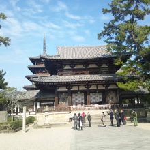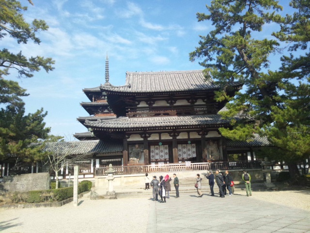 ここも無料で見られる範囲にあります。この中門から中をのぞくと金堂や五重塔が見られます。境内の構造としては東大寺と同じですが、ここ法隆寺がすごいのは昔のまま、すべての建物がすべての位置のそのまま残されているという点だそうです。