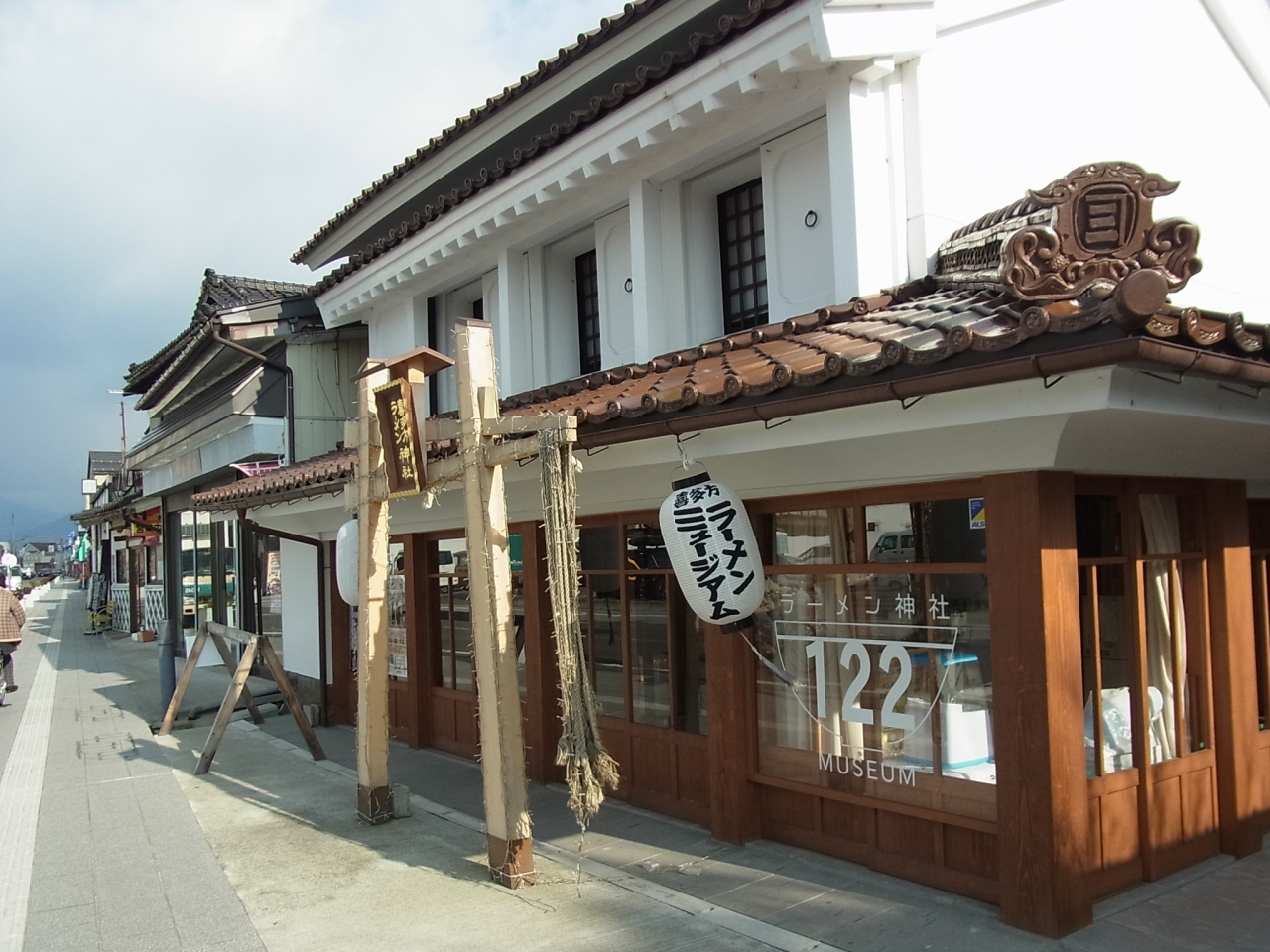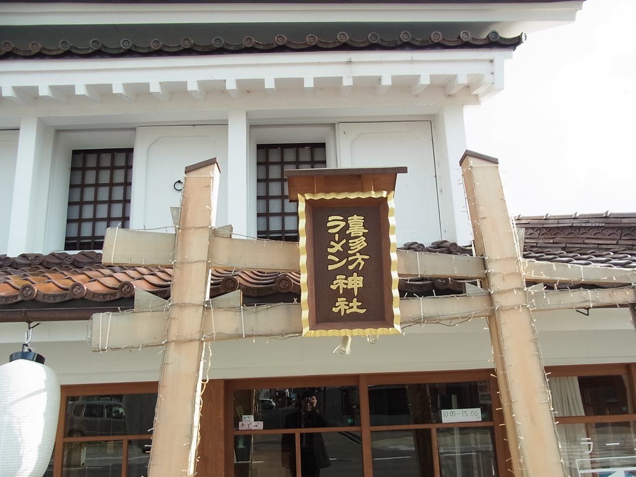喜多方町のふれあい通りのちょうど中間あたりに建っています。割り箸をイメージした鳥居型モニュメントが目印になるのですぐわかります。喜多方ラーメンの起源や歴史的な背景、麺やスープのおいしさの秘密などが展示されています。また、喜多方市内全域のラーメン店を紹介するパネルコーナーなんかも。店内にはラーメン丼を御神体に見立てた御仮屋(おかりや)を配したラーメン神社もあります。特設の大きなラーメン丼の中に入って記念撮影することも可能です。