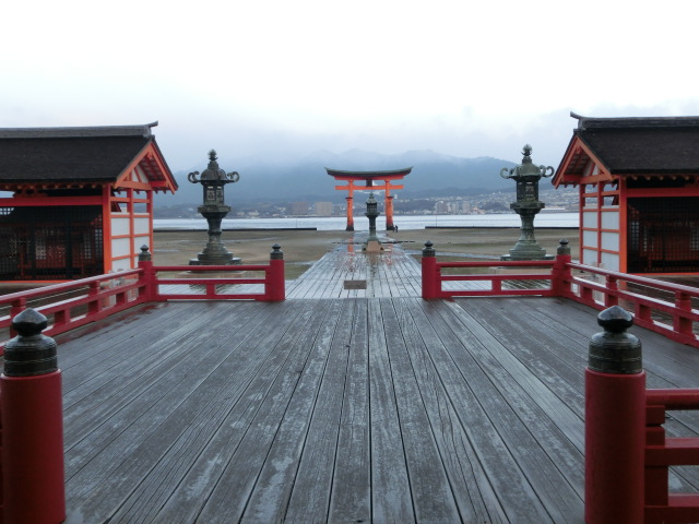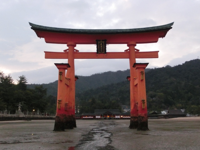 海に浮かぶ姿も素晴らしいのですが、今回は大鳥居に行きたかったので干潮の時間とフェリーの時間をチェックして早朝に向かいました。