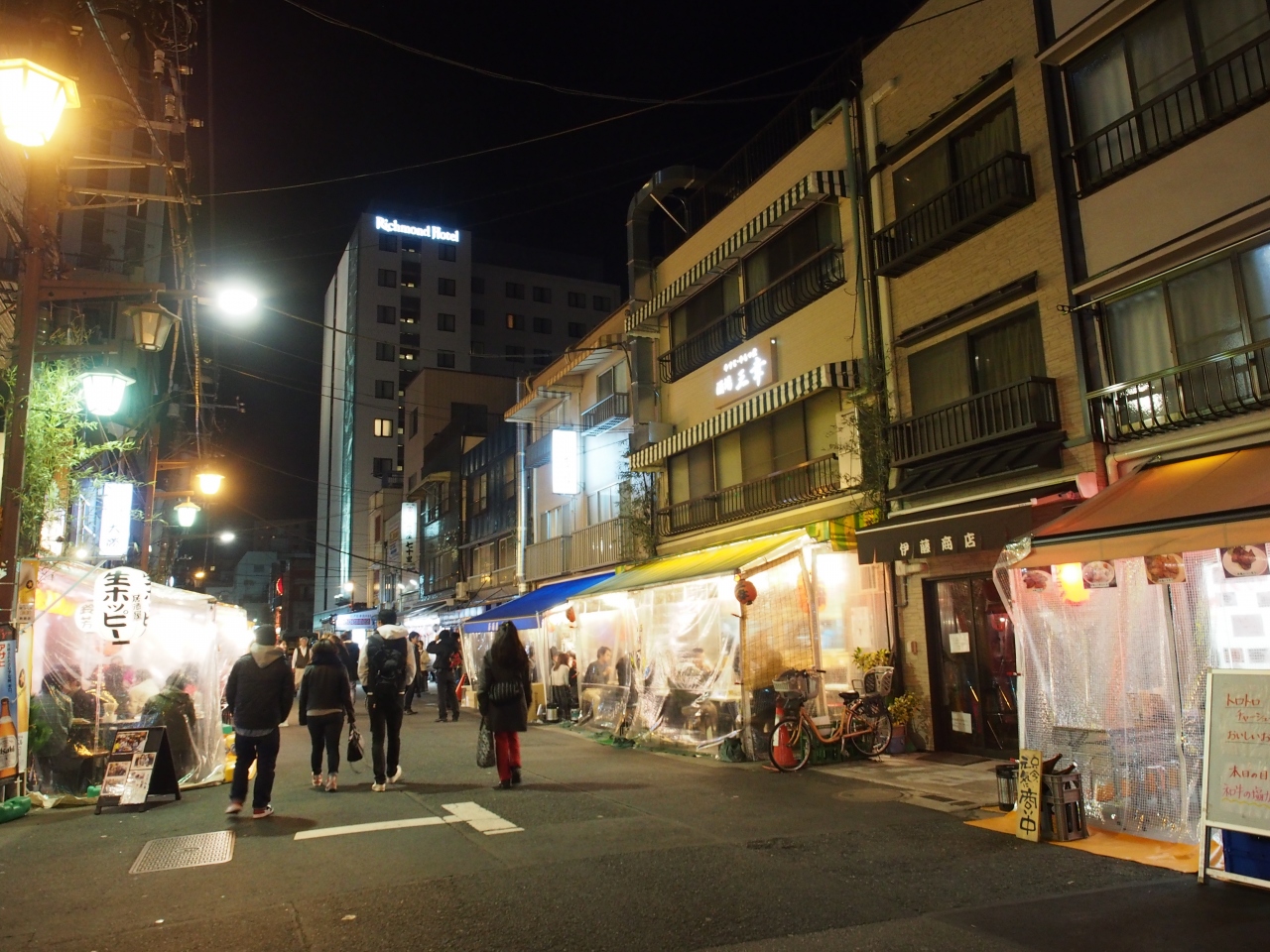 はじめて行ったのですがかなりの賑わい。ビニールが垂れたお店がずらりと並び、けっこう熱心な客引きのお姉さんがいて、雰囲気がタイとかなんかアジアの屋台街みたいだなぁと感じました。