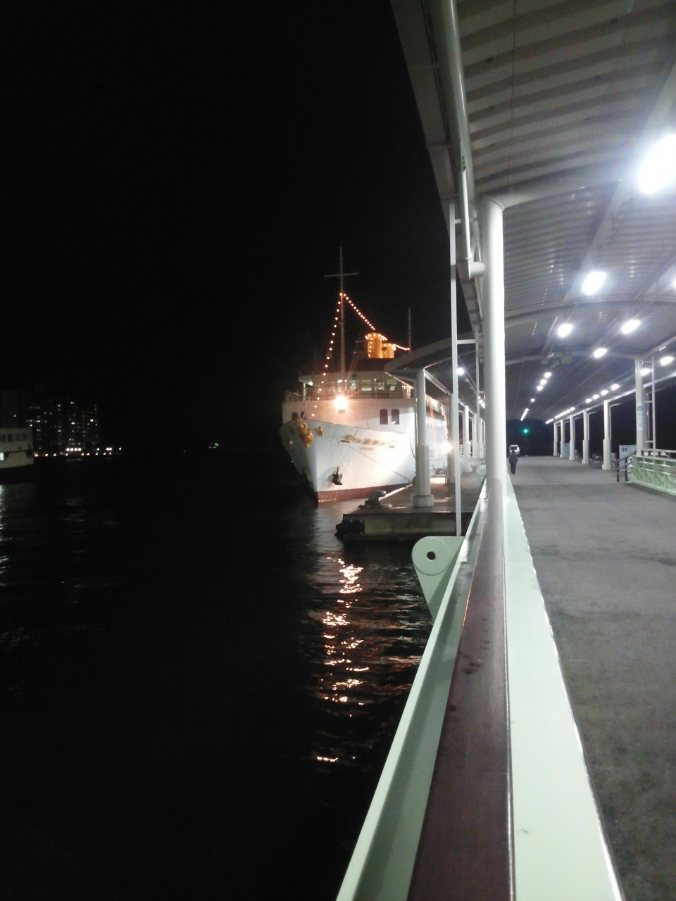 広島滞在初日の夕方、路面電車で広島港まで行きました。ここからは宮島をはじめ瀬戸内海に浮かぶ各島や四国松山への定期船が出ています。また、瀬戸内海のランチ/ディナーのクルーズ船もあり(前日までに予約要)、予算と時間に余裕のある方にはお薦めです。