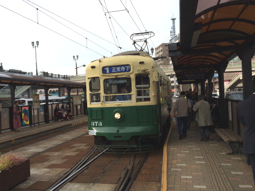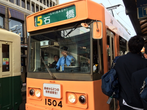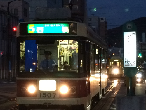私が行った時は公民館前から長崎駅への近い道が通れなくなっているとのことなので、築町周りで帰らなければならず、赤迫行きがなかなか来なかったので、バスの方が早いかどうか地元の人に聞いたら、バスの方が早いけれど、来ればって感じなのと夕方で道が混んでいたら路面電車の方がいいって言ってました。