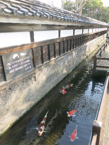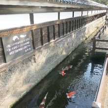 建物の前には、コイが泳ぐ小さな水路があります。