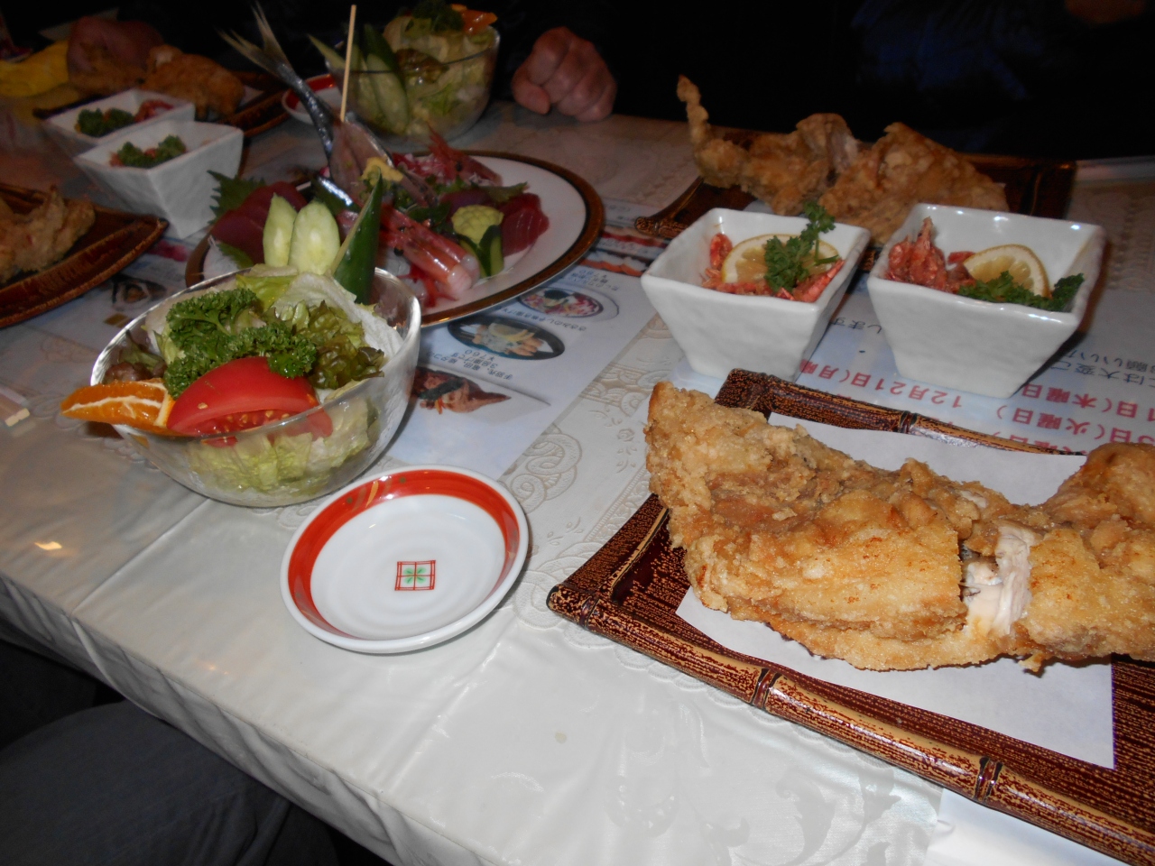 メインはボリュ−ムたっぷりな鶏の手羽揚げで他には刺身盛合せ、茶碗蒸し、川エビ、茶碗蒸しが添えられビ−ルや酒類と合わせてもリ−ズナブルな料金、しかも後半には入ると江戸前寿司が出されてお腹いっぱいでした。