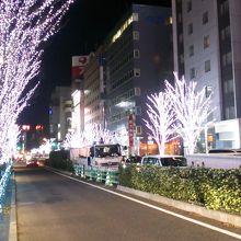 但し目の前に位置するJR博多駅前の広場で大規模なイルミネーションイベントが開催されていたせいか、この通り沿いのイルミネーションを関心を持って見ている人は見当たりませんでした。