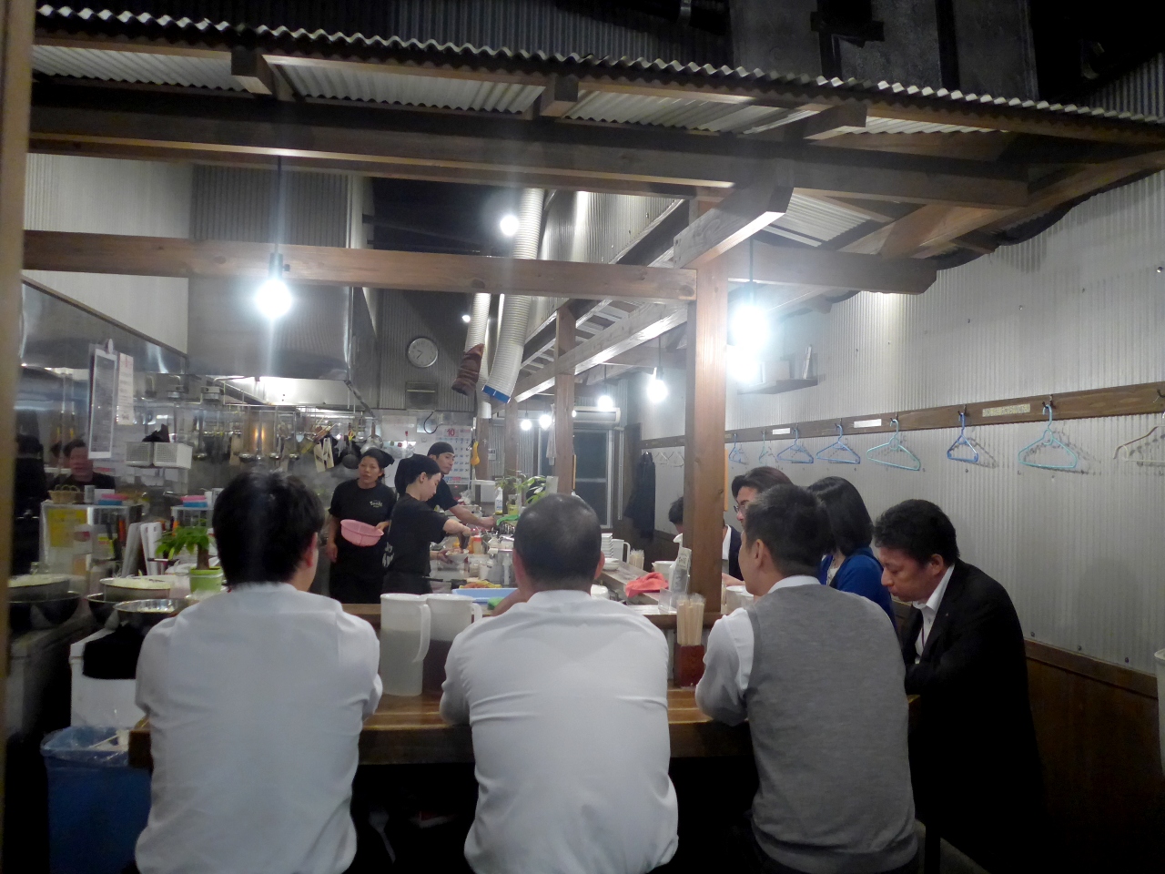 夕食をきちんと食べられなかったので地元の人の推薦で行ったラーメン屋.宮崎ラーメンらしい.中は満員.ビールと餃子,ちゃがラーメンを食べる.とろみのあるスープでコクはあるが少し塩からいかな.ビールを飲んだ後に食べるのにはちょうどいいかも.まあまあのラーメンだった.つけ麺が有名なようだ.