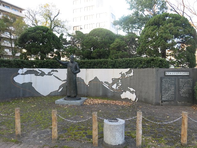 ザビエルの来航を記念して遊歩公園内に建立されたといことです。
